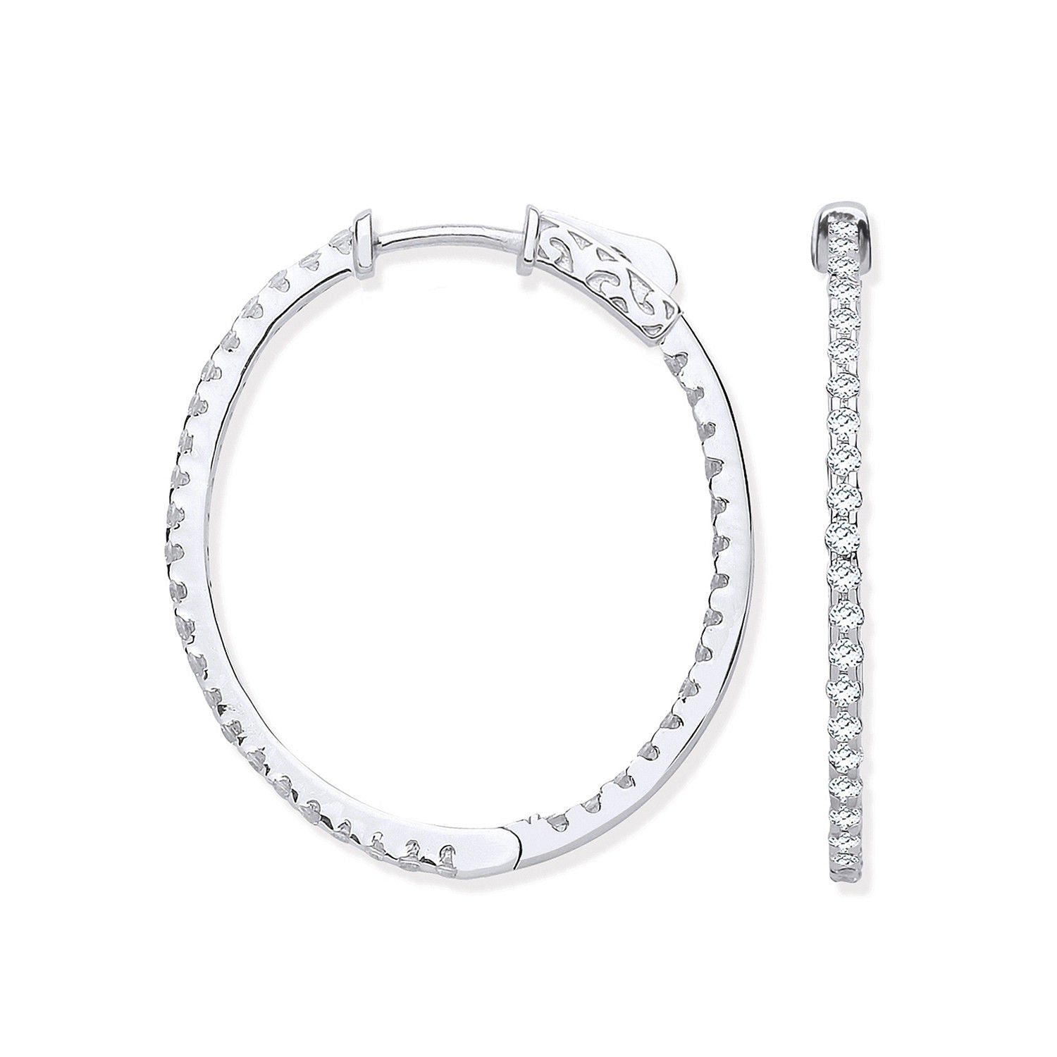 18ct WG 1.27ctw Diamond set Inside & Outside Oval Hoops