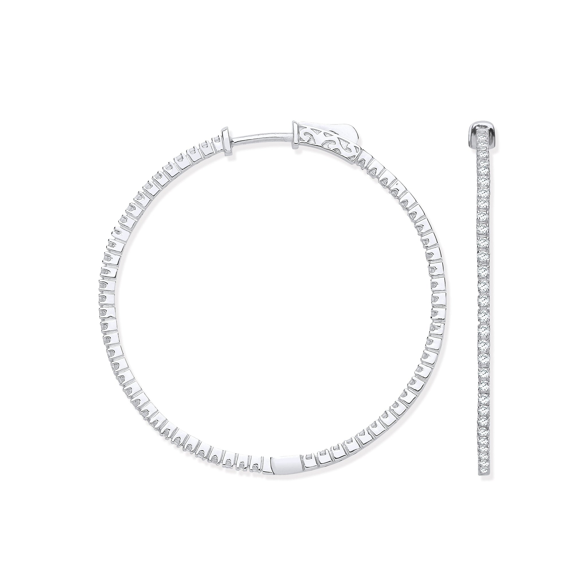 18ct White Gold 1.1ctw Claw Set Hoop Earrings