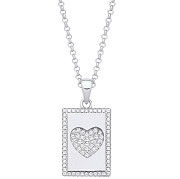 Silver Dog Tag CZs Heart Pendant on Chain