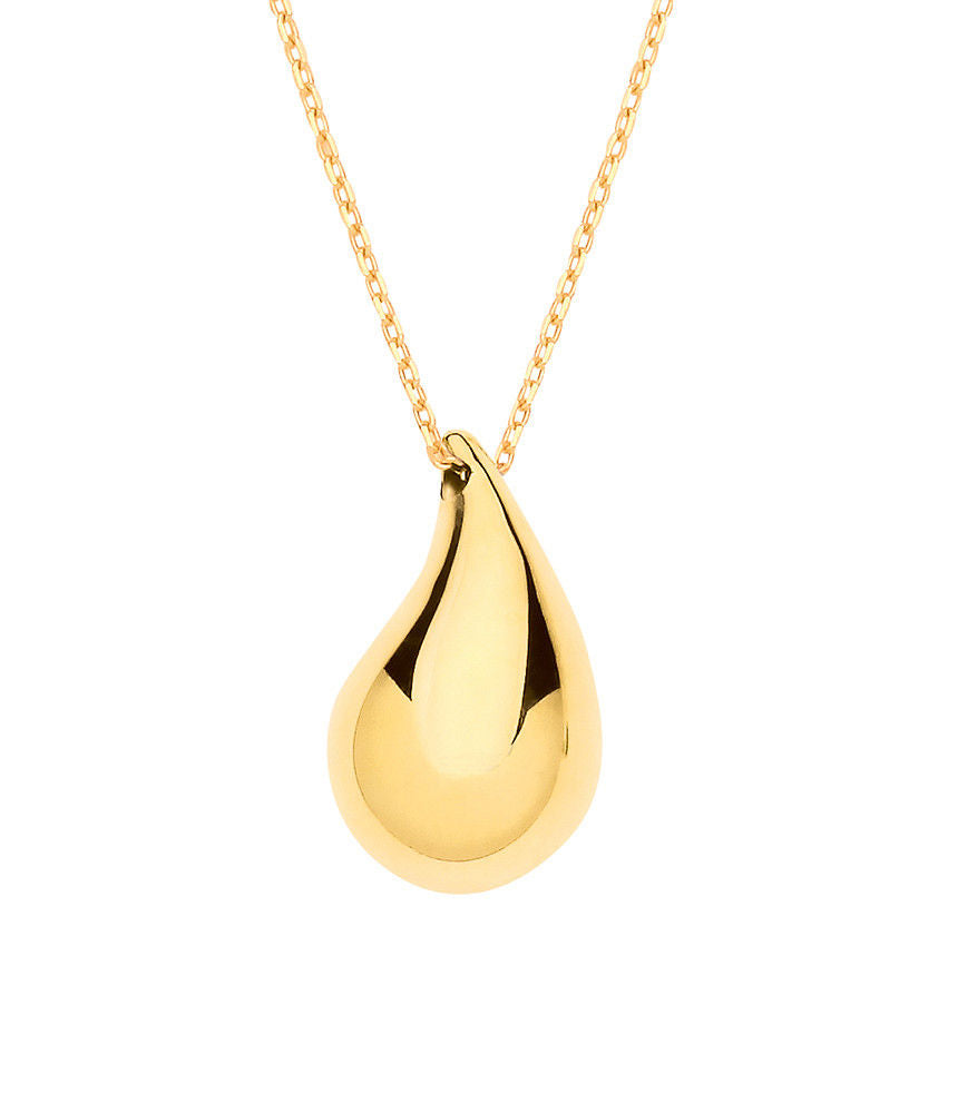9ct Yellow Gold Puffed Teardrop Pendant Chain