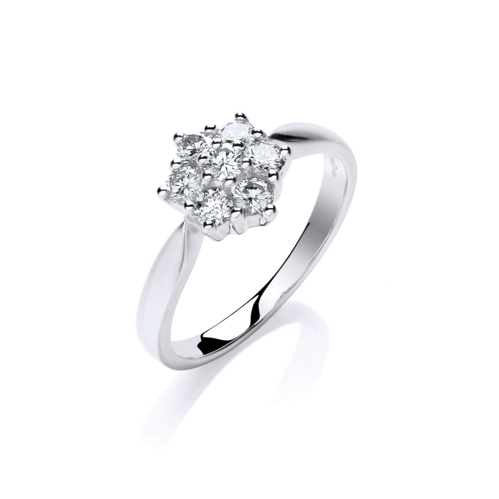 9ct 9ct White Gold 0.50ctw Diamond Flower / Cluster Ring