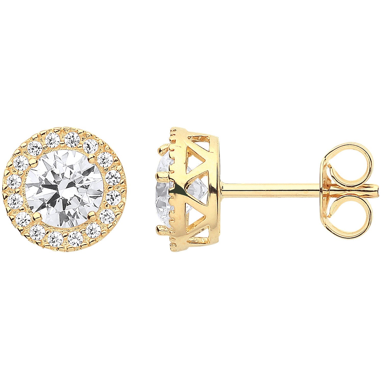 9ct Yellow Gold 8mm Round Cubic Zirconia Halo Stud Earrings