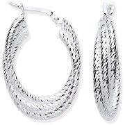 Silver Ribbed Oval 3 Row Hoop Earrings