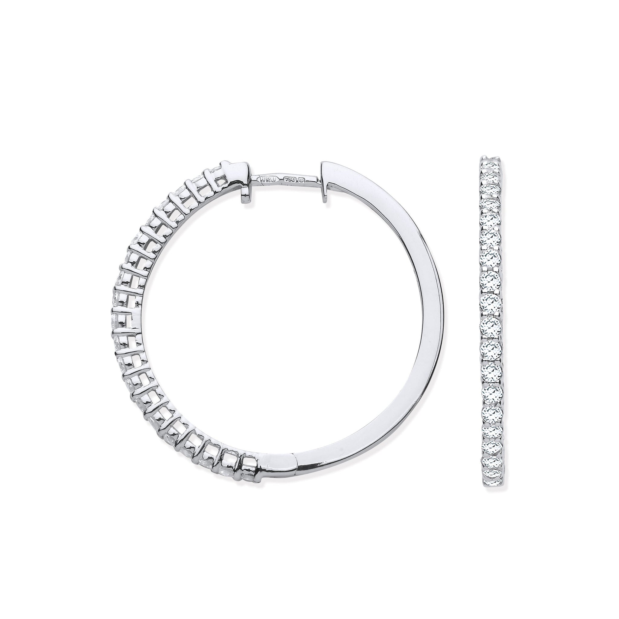 18ct White Gold 0.70ct Claw Set Diamond Hinged Hoop Earrings